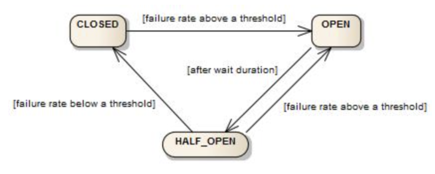 —> 요청의 성공 실패 여부에 따라 상태가 변하며 CLOSED는 OPEN으로, OPEN은 HALF_OPEN으로, 실패율에 따라 CLOSED, OPEN 두 상태 중 하나로 변한다.