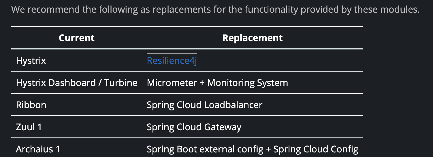 - Spring에서 Hystrix 대신 사용을 권장하는 라이브러리