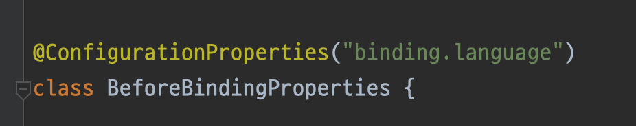 참고로 @EnableConfigurationProperties(BeforeBindingProperties::class)을 사용해서도 @ConstructorBinding을 사용할 수 있지만 프로퍼티 클래스가 많아지게 되면 코드가 무거워지는 한계가 있어 권장하지는 않는다. (일일히 다 선언 필요.)