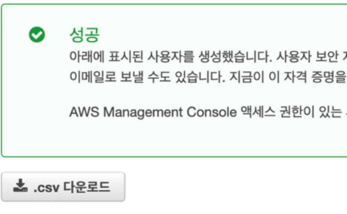 해당 설정을 완료하였다면 액세스 키가 발급이 되는데 사용자의 AccessKey와 Secret Access Key를 발급받을 수 있는데 해당 키는 재발급은 가능하나 찾을 수는 없으니 잘 보관해둔다.